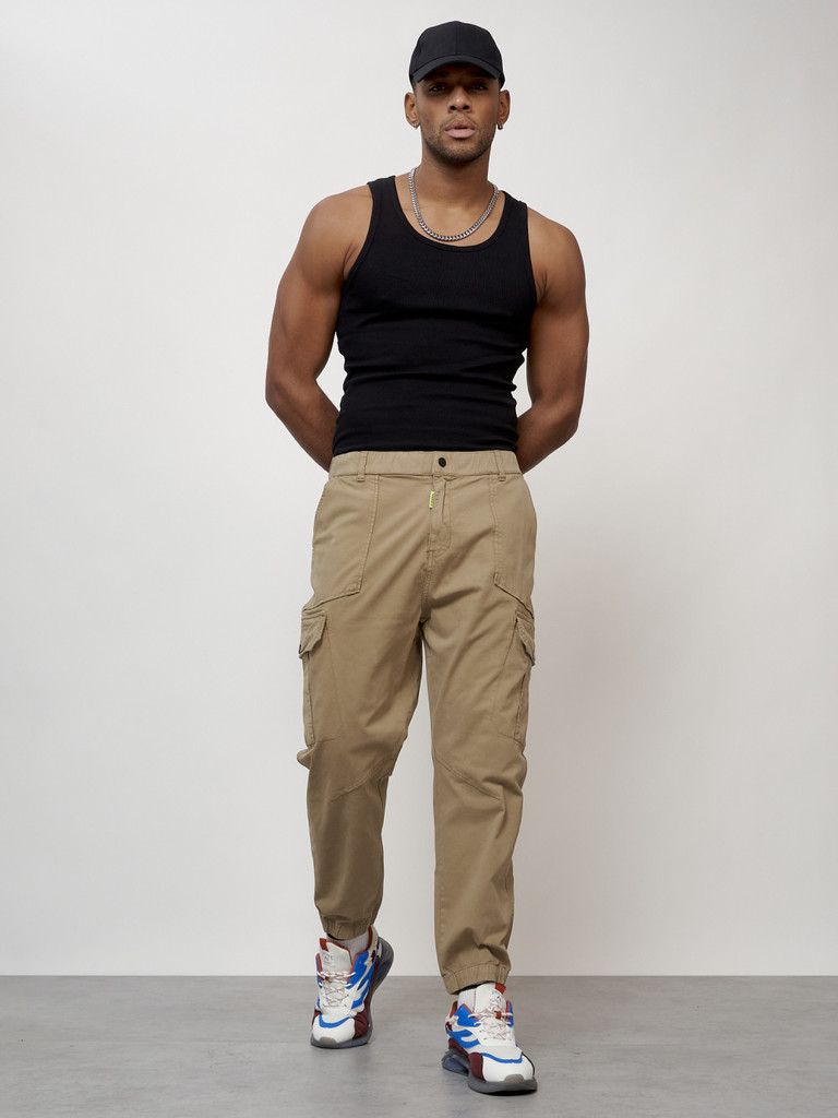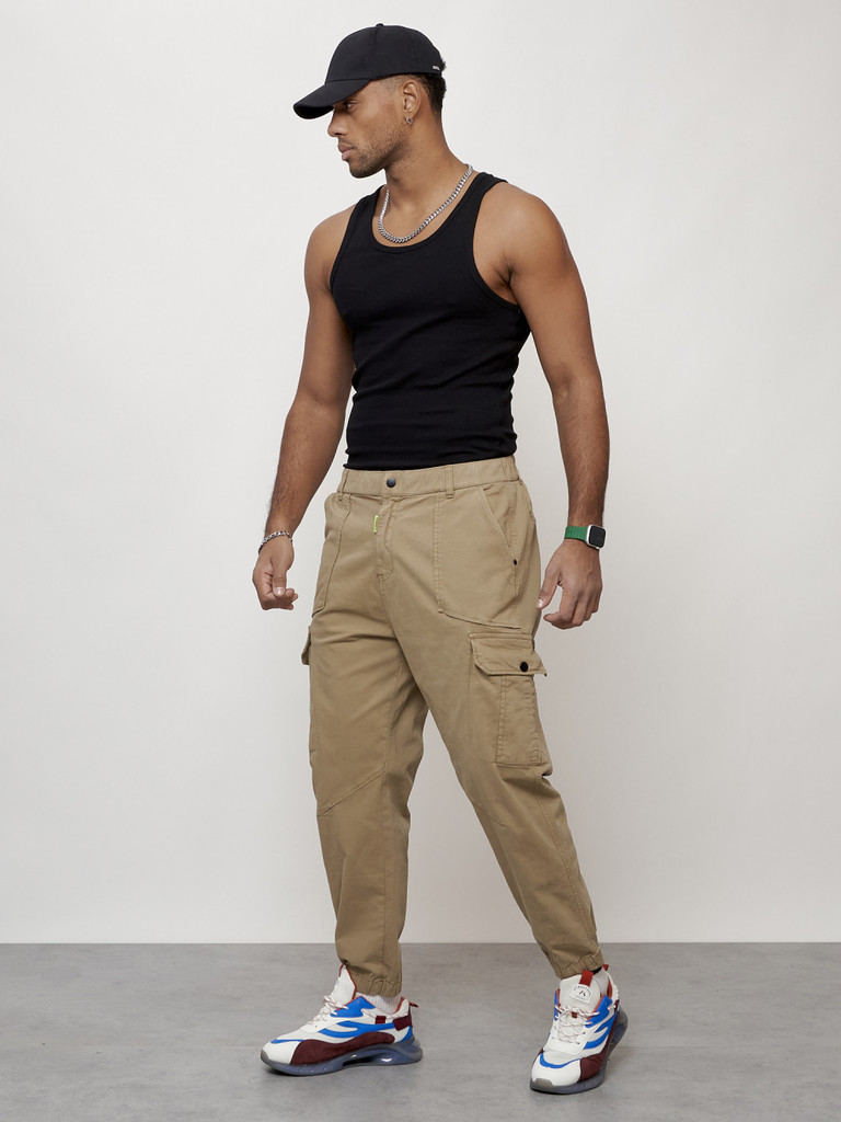Джинсы карго мужские с накладными карманами бежевого цвета 2422BВопросы по товару