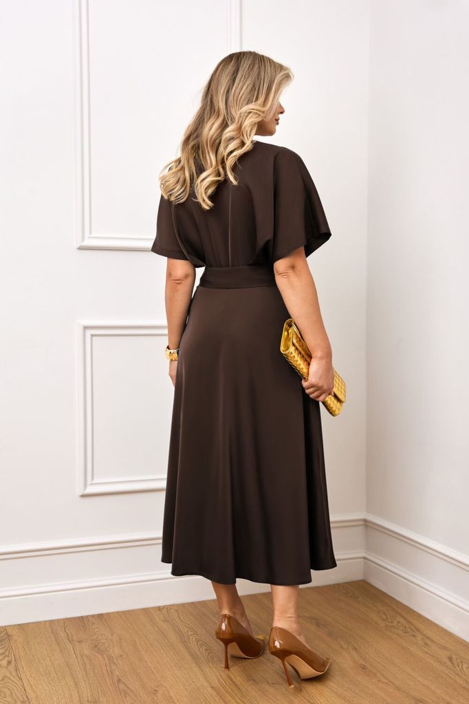 Состав: Вискоза-32%; ПЭ-65%; Спандекс-3%; Элегантное платье, полуприлегающего силуэта, выполнено из плательной ткани с добавлением вискозы. Лиф платья на запах, с отложным воротником и лацканом, пояс ... Показать описаниевтачной, что придет модели особый шарм. Рукав платья втачной, со сборкой по окату, по низу с манжетой с небольшим разрезом. В боковом шве платья потайная молния (30 см) и функциональные карманы. По спинке средний шов и рельефы, снизу шлица. Модель прекрасно подойдет для на каждый день, вы будете выглядеть неотразимо и элегантно. Длина платья по спинке 102 см. Длина рукава 50 см.