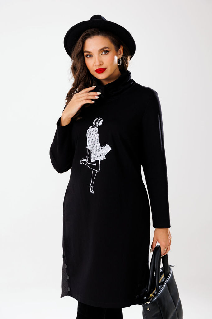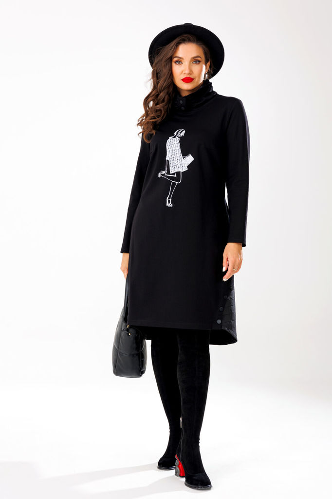 Состав: Вискоза-32%; ПЭ-65%; Спандекс-3%; Стильное платье, модного А-силуэта, выполнено из двух видов ткани, по переду из трикотажа с добавлением вискозы и спинка – комбинация трикотажа и высококачест... Показать описаниевенной стеганки. Перед платья декорирован стильной печатью, что придает модели особый шарм. Горловина стойка, с застежкой на кнопки. Рукав втачной, полной длины. По низу переда платье с застежкой на кнопки. Модель удобная и практичная, вы будете в нем выглядеть неотразимо.
