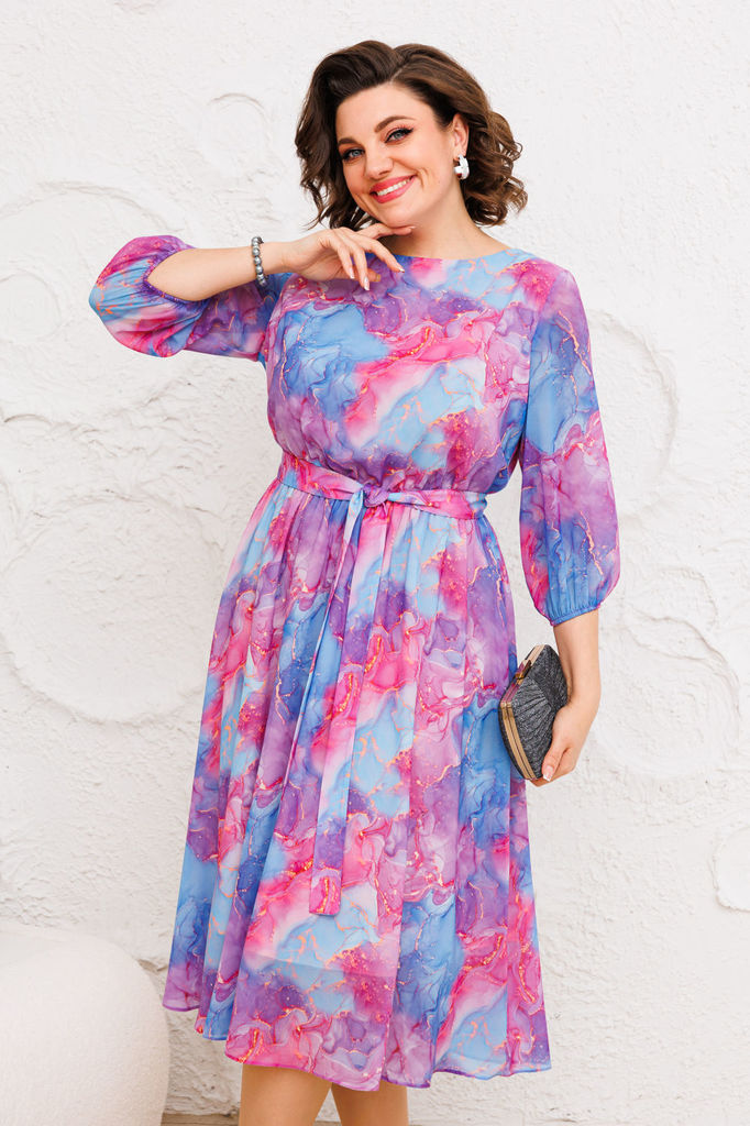 Состав: Платье: Вискоза-32%; ПЭ-65%; Спандекс-3%; Подкладка: ПЭ-100%; Роскошное женское платье полуприлегающего силуэта, расширенное к низу, выполнено из высококачественного шифона с модным дизайнерск... Показать описаниеим принтом. Платье отрезное по талии со сборкой на резинке, полностью на трикотажной подкладке. Вырез горловины округлый, на обтачке. Рукава втачные, по низу собраны на узкую резинку. В комплект входит пояс из основной ткани. Модель платья удобная и практичная, прекрасно подойдет для ежедневной носки, а также для торжественного мероприятия.
