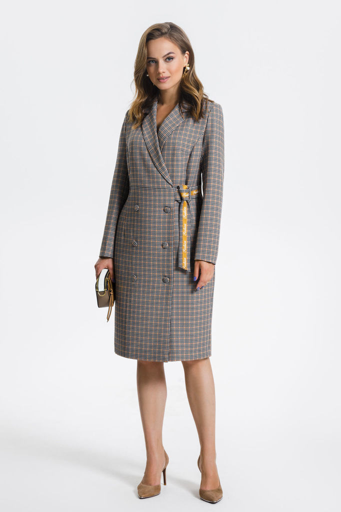 Состав: Вискоза-32%; ПЭ-65%; Спандекс-3%; Стильное платье, полуприлегающего силуэта, выполнено из высококачественной плательной ткани с добавлением вискозы с модным принтом клетка. Платье с застежкой ... Показать описаниена шесть пуговиц, обтянутых основной тканью, а также рамку с завязкой на пояс, декорированной пришивной тесьмой надписью FASHION. Рукав втачной, полной длины. Модель практичная и современная, прекрасно стройнит, отлично подойдет для работы в офисе и ежедневной носки. Длина платья 102 см. Длина рукава 61 см.