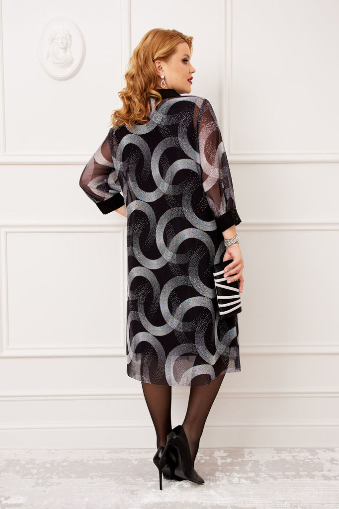 Состав: Платье: Вискоза-32%; ПЭ-65%; Спандекс-3%; Накидка: ПЭ-100%; Нарядный и элегантный комплект, состоит из платья и накидки. Платье А-силуэта, выполнено из высококачественной плательной ткани с до... Показать описаниебавлением вискозы, горловина с V-образным вырезом, в боковом шве потайная молния. Накидка выполнена из мягкой трикотажной сетки с модным дизайнерским принтом (приятная к телу, хорошо тянется, держит форму). Горловина накидки с воротником из плательной ткани, по спинке с небольшим вырезом капелькой и застежкой на пуговицы. Манжета рукава с отделкой из основной ткани с застежкой на пуговицы. Утонченный комплект дополнит гардероб каждой женщины, вы будете выглядеть неотразимо, модель невероятно стройнит!