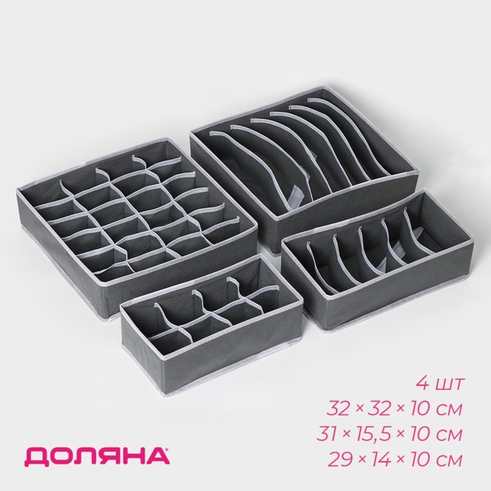 Органайзеры для хранения белья Доляна «Гранж», 4 шт: 33?32?10 см, 31?15,5?10 см, 29?14?10 см, серыеВопросы по товару