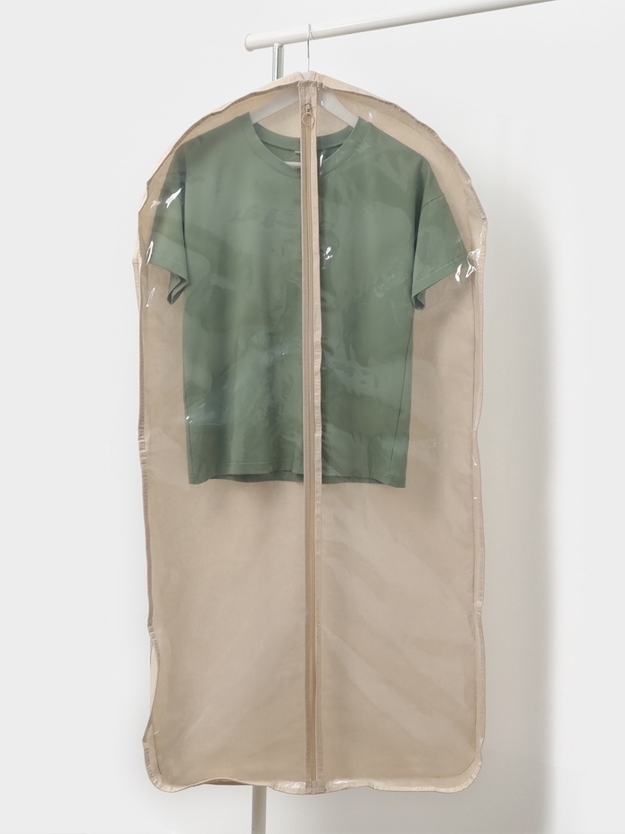 Чехол для хранения одежды на молнии — это практичное решение для защиты вещей от пыли, влаги и повреждений. Изделие выполнено в нейтральном бежевом оттенке, который легко впишется в интерьер шкафа или... Показать описание гардеробной. Прочный флизелиновый материал обеспечивает долговечность и сохраняет форму даже при длительном использовании. Особенности * Удобный размер 120?60 см подходит для хранения пальто, курток, костюмов и других вещей. * Молния по всей длине обеспечивает лёгкий доступ к содержимому и надёжную защиту. * Флизелин — лёгкий, но плотный материал, который не мнётся и не рвётся. * Чехол сохраняет вещи в идеальном состоянии, предотвращая появление пыли и влаги. * Компактно складывается для хранения в шкафу или на полке. Почему этот чехол — must-have для гардероба? Чехол для одежды — это не просто аксессуар, а необходимость для тех, кто ценит порядок и заботится о своих вещах. Он подходит для сезонного хранения, поездок или организации пространства в шкафу. Благодаря универсальному дизайну и функциональности, изделие станет незаменимым помощником в поддержании чистоты и аккуратности вашего гардероба. Комплектация * Чехол для одежды - 1 шт.