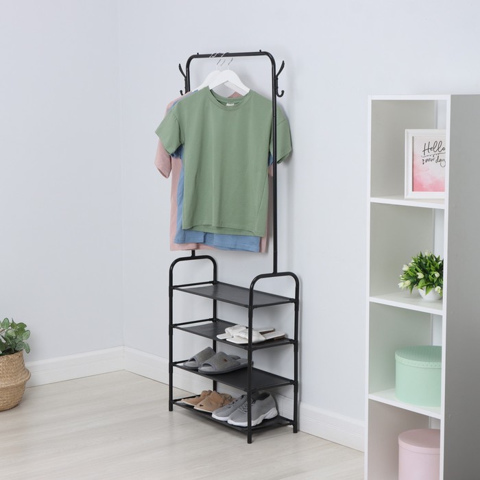 Вешалка - стойка напольная для одежды LaDо?m, с полками для хранения, 4 яруса, 60?26?160 см, чёрнаяВопросы по товару
