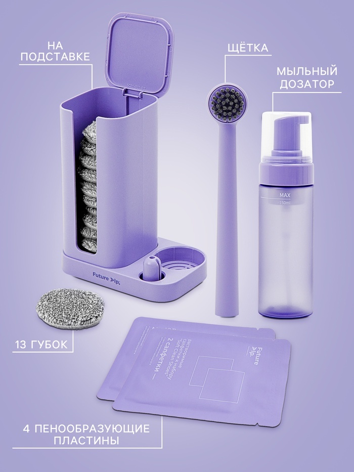 Пена для обуви со щёткой Future Alp Soft Clean Shoes, на подставке, 13 губок, 4 мыльные салфетки, пенный дозаторВопросы по товару