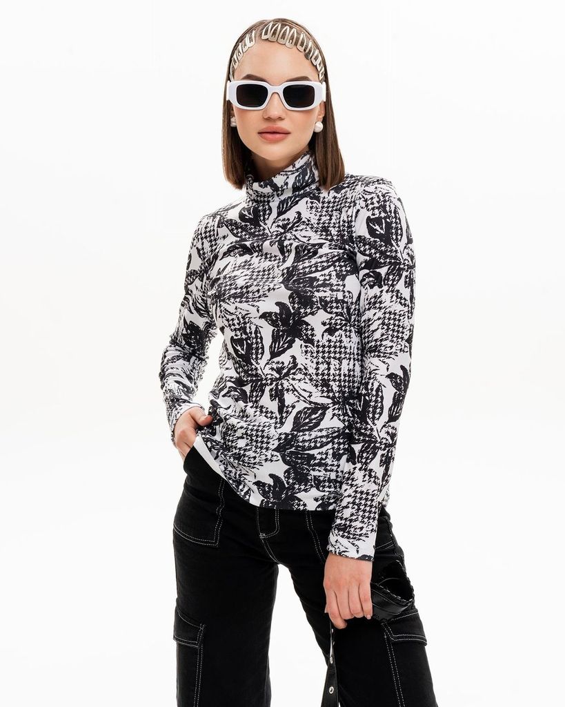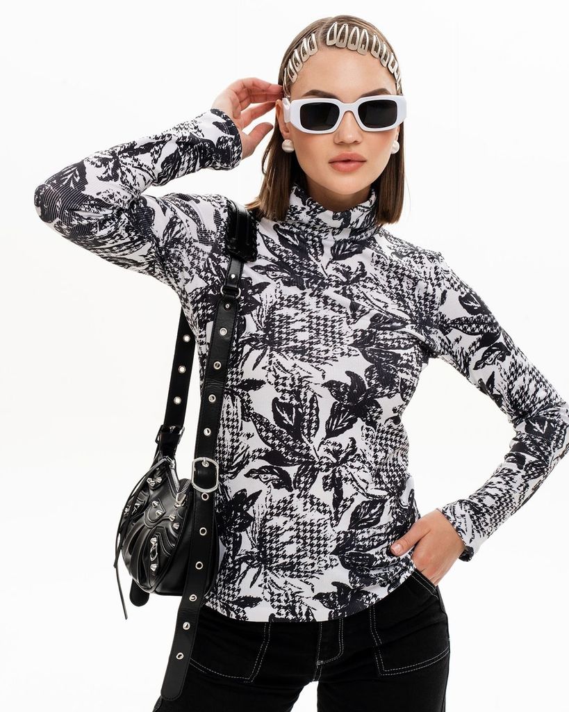 Водолазка с длинным рукавом и авторским принтом изготовлена из высококачественного трикотажа лапша. Этот эксклюзивный товар представляет собой комфортное и стильное решение для холодных времен года. Б... Показать описаниеадлон оснащен удобным воротником-стойкой и позволяет подчеркнуть индивидуальность своего обладателя. Оригинальный авторский принт добавляет неповторимости и уникальности этой водолазке. Кроме того, данная модель представлена в широком размерном ряду от 44 до 56, что позволяет каждому клиенту найти свой идеальный вариант. Водолазка подходит как для женщин, так и для девушек, позволяя всегда выглядеть стильно и модно. Не упустите возможность приобрести эту эксклюзивную водолазку с длинным рукавом и авторским принтом. Она не только гарантирует комфорт и тепло в холодные дни, но и станет настоящим украшением вашего гардероба. Покупайте прямо сейчас и наслаждайтесь качеством и стилем! Состав: 65% полиэстер, 30% вискоза, 5% спандекс