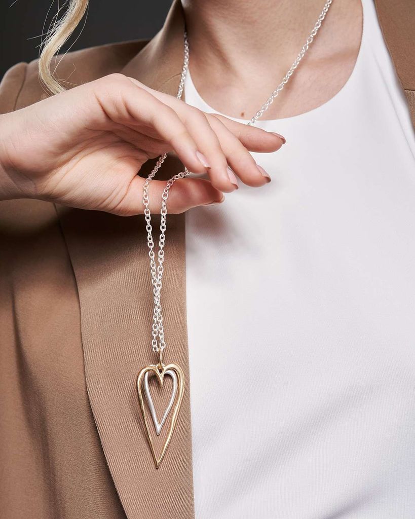 Колье на длинной цепочке с двумя подвесками сердцами – это изысканный аксессуар, который обладает уникальной способностью дополнить образ как в повседневной жизни, так и на торжественных мероприятиях... Показать описание. Нежные подвески сердца разного размера, выполненные из матового металла, символизируют любовь и привязанность, придавая вашему стилю романтичность и утонченность. Бижутерный сплав высокого качества гарантирует долговечность, что является важным аспектом в выборе украшений. Колье сердце можно носить как в формате длинного изделия, так и в виде чокера с подвеской, что позволяет легко адаптировать его под различные наряды и образы. Это универсальное решение делает кулон на цепочке сердце идеальным дополнением для любого случая, будь то вечерний выход или деловая встреча. Такое колье сердце с двумя подвесками станет отличным подарком для любимого человека, ведь оно представляет собой не просто украшение, а символ глубоких чувств и нежности. Состав: Бижутерный сплав
