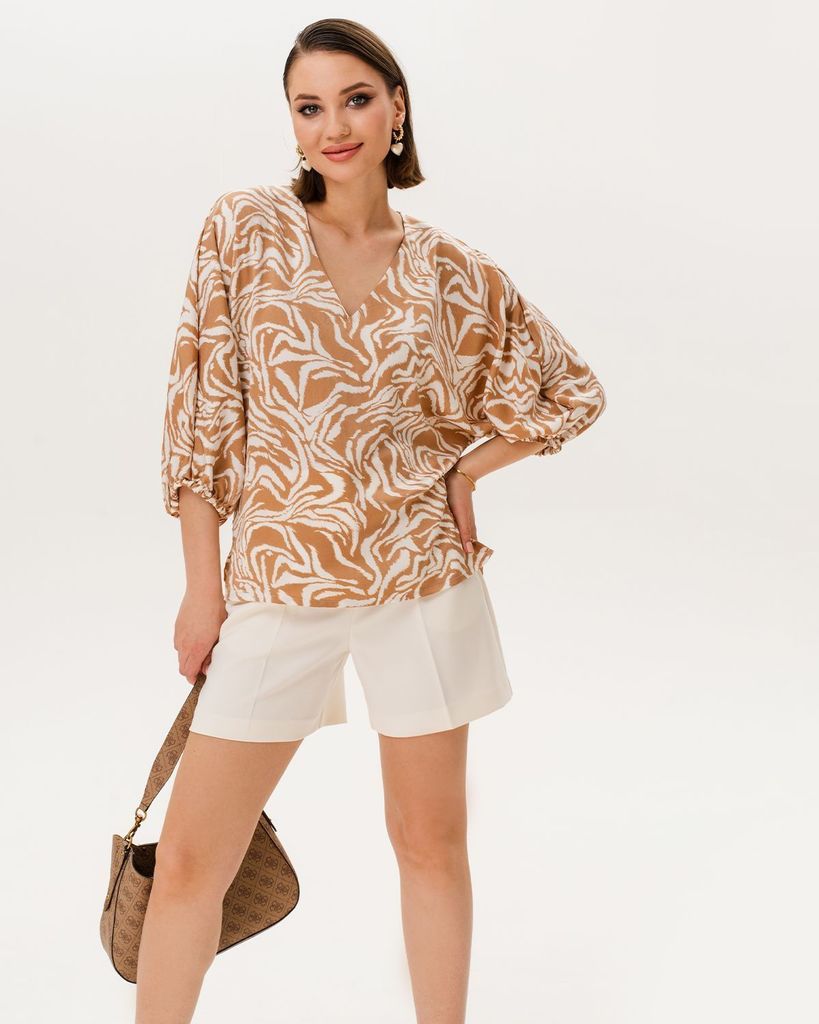 Блузка женская из одной из самых модных расцветок сезона. Материал приятен для тела, лёгкий, хорошо дышит. Кофта женская оверсайз кроя отлично подходит для создания расслабленных образов. Она комфорт... Показать описаниена из-за свободной посадки и не стесняет движения. V-образный вырез визуально удлиняет шею. Ткань красиво струится. Наше производство находится в России, качеству пошива мы уделяем отдельное внимание. Наши постоянные клиенты доверяют нам и знают, что никогда не получат торчащие нитки при заказе изделий. Выбирая подходящий размер, ориентируйтесь на таблицу в карусели. Учитывайте, что кофта женская не должна быть приталенной. Состав: 70% полиэстер, 30% вискоза