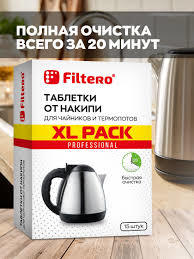 Таблетки от накипи Filtero предназначены специально для чайников и термопотов. Улучшенная формула позволяет быстро удалить даже сильно окаменевший известковый налет. Очищение ваших бытовых приборов от... Показать описание накипи и известковых отложений продлевает срок эксплуатации Ваших приборов и предотвращает различные повреждения. Способ применения: Наполнить чайник на 3/4 объема водой и вскипятить. Поместить таблетку Filtero в чайник и оставить на 20 минут. При сильном окаменении известкового налета использовать две таблетки. Раствор вылить, оборудование тщательно прополоскать чистой водой. Форма выпуска Упаковка 15 штук Страна-производитель Германия