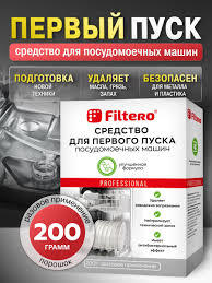 Эффективное средство для очищения внутренних деталей посудомоечных машин ПММ от масел, пыли и прочих заводских загрязнений при первом запуске. Многофункциональное средство Filtero обезжиривает, очищае... Показать описаниет и освежает новую посудомоечную машину всего за 1 применение. Благодаря улучшенной формуле, можно избежать появления трудновыводимых пятен от технических масел на посуде во время первого пуска. Идеальное решение для подготовки новой техники к ежедневному использованию! Подходит для всех типов и марок посудомоечных машин (ПММ). Отличительные характеристики средства для первого пуска Filtero от аналогов: 1. Удобный формат в виде порошка - гарантия полного растворения. 2. Самый оптимальный объем - 200 г 3. Оптимизированная и улучшенная формула - удаление заводских и технических загрязнений за одно применение! 4. Нейтрализует технический запах - гарантия свежести вымытой посуды без посторонних заводских запахов. Рекомендации по применению: Убедитесь, что в посудомоечной машине нет посуды. Содержимое пакета засыпать в контейнер для моющего средства до минимальной отметки. Оставшуюся часть порошка высыпать на дно камеры посудомоечной машины. Включить программу мойки посуды 65С. Дать программе отработать до конца. Выбирайте средство первого пуска для посудомоечной машины (ПММ) от Filtero и радуйтесь чистоте, свежести и блеску вымытой посуде многие годы!