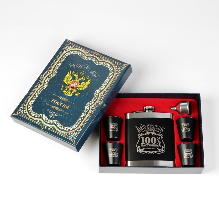 Подарочный набор «100 % Мужик»: фляжка 540 мл, 4 стопки, воронкаПодарочный набор «100 % Мужик»: фляжка 540 мл, 4 стопки, воронкаПодарочный набор «100 % Мужик»: фляжка 540 мл, 4 стопки, воронка