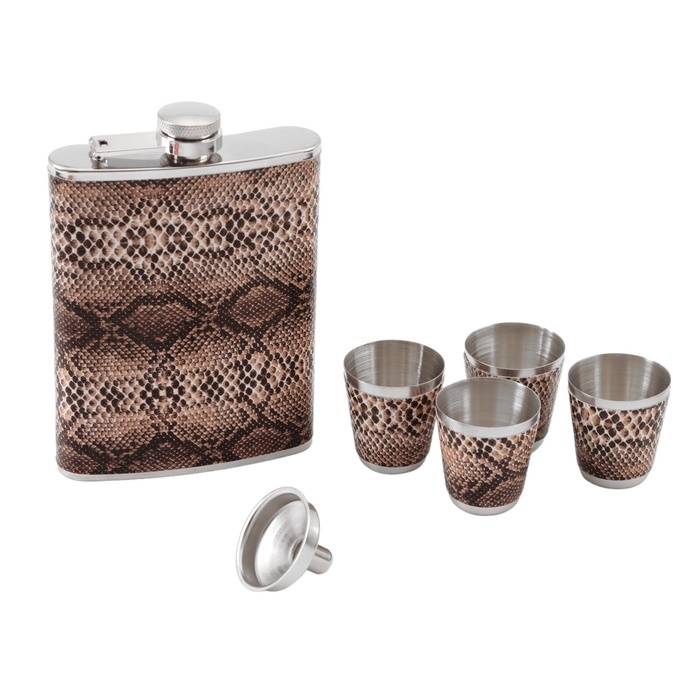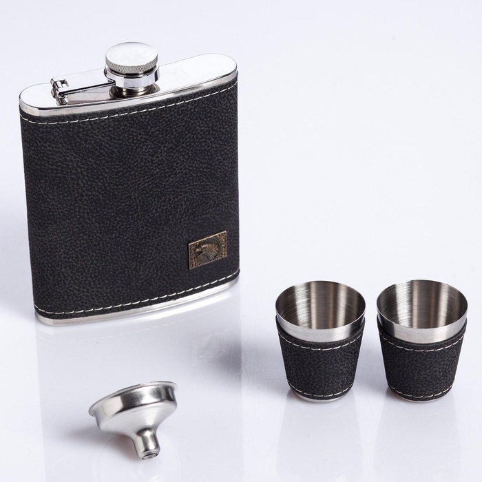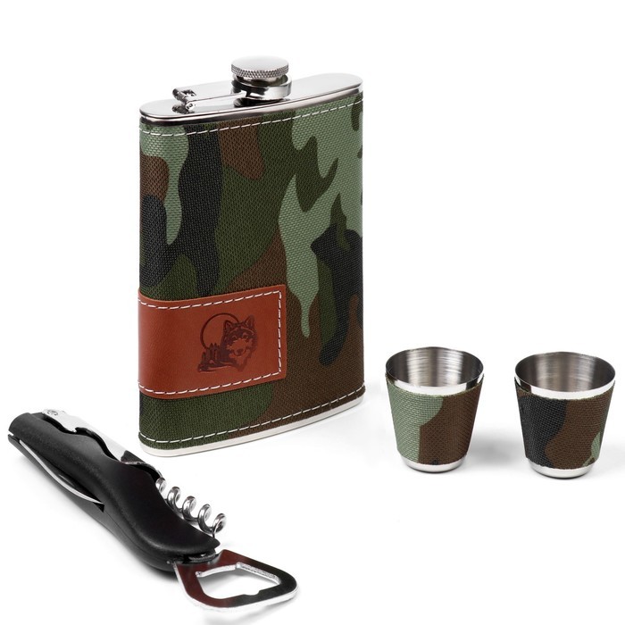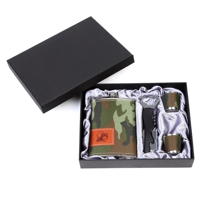 Фляжка — это небольшой сосуд, который используется для хранения и переноса жидкостей. Они популярны среди путешественников, спортсменов и любителей активного отдыха. Легкий и функциональный аксессуар ... Показать описание- станет незаменимым спутником любых приключений. Фляжка - это оригинальный способ хранить и переносить жидкость в стильном форм-факторе, модный аксессуар, который привлекает внимание и поднимает настроение. Фляжка будет вашим верным спутником, готовым утолить вашу жажду в любых ситуациях. Компактный размер фляжки делает ее идеальным выбором для путешествий и прогулок. Фляга предназначена для хранения и транспортировки питьевой воды. В нее также можно наливать любые согревающие напитки, в том числе алкогольные. Отличным дополнением в наборе с фляжкой являются 2 рюмки и воронка для удобного переливания жидкостей, упакованы в подарочную коробку. Подарочный набор подойдёт в качестве подарка папе, брату, другу, брату, дедушке на 23 февраля, день рождения или любой другой праздник.