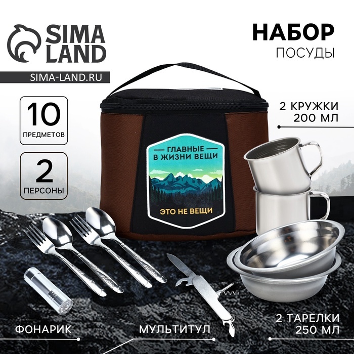 Подарочный набор посуды для похода «Главные в жизни вещи», 10 предметов