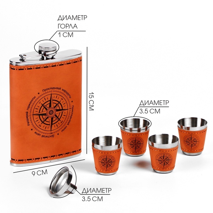 Подарочный набор «Компас»: фляжка 270 мл, 4 стопки, воронка Вопросы по товару