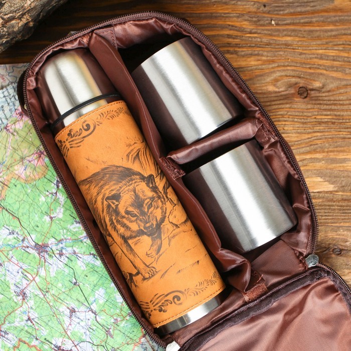 Подарочный набор «Волк»: термос 500 мл, кружка 2 шт. ? 170 млПодарочный набор «Волк»: термос 500 мл, кружка 2 шт. ? 170 млПодарочный набор «Волк»: термос 500 мл, кружка 2 шт. ? 170 мл