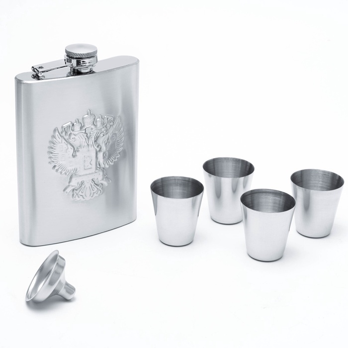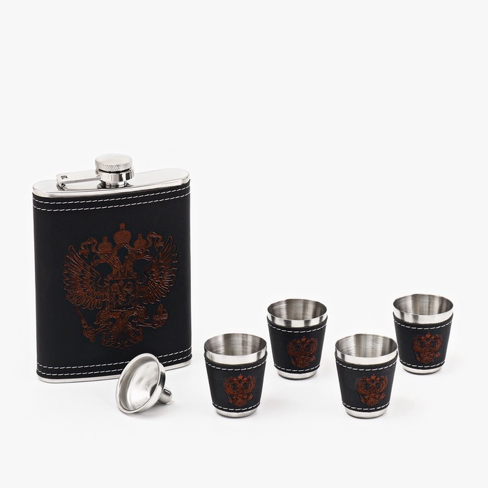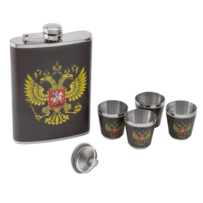 Подарочный набор «Герб России»: фляжка 240 мл, 4 стопки, воронкаПодарочный набор «Герб России»: фляжка 240 мл, 4 стопки, воронкаПодарочный набор «Герб России»: фляжка 240 мл, 4 стопки, воронка