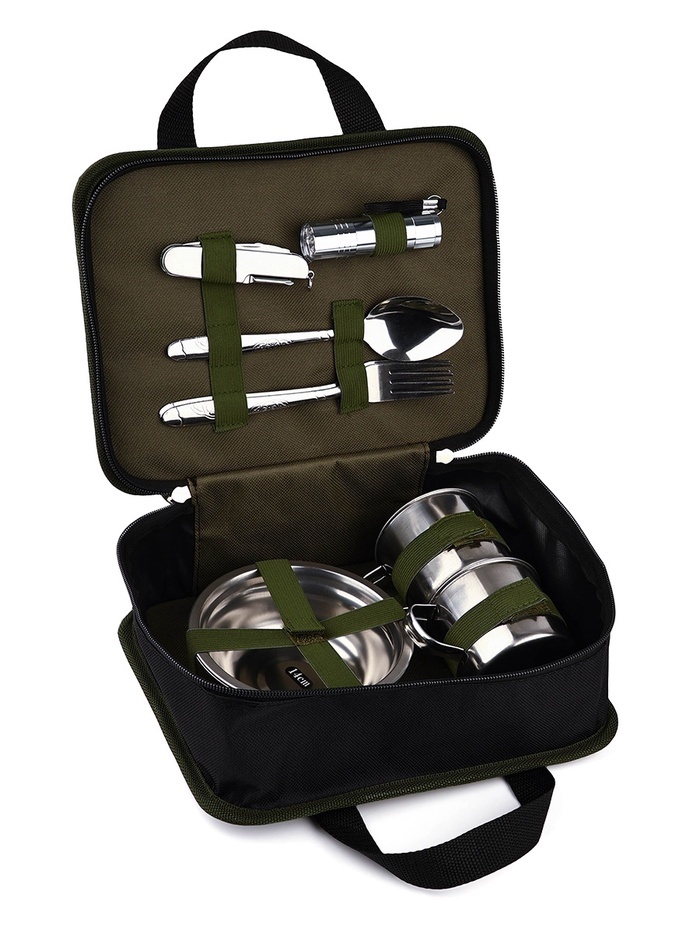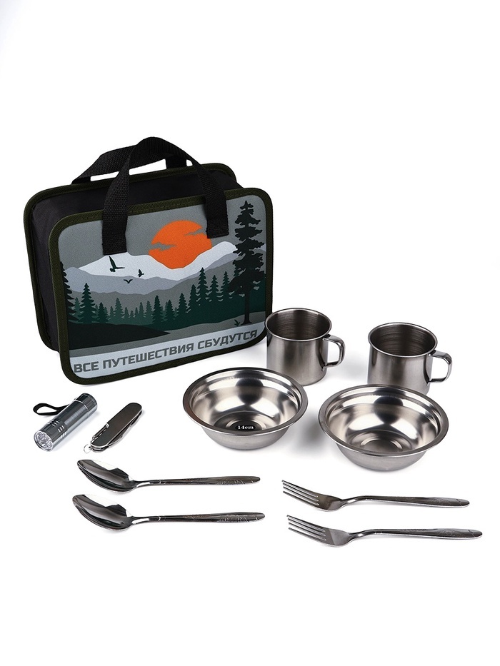 Набор для пикника с сумкой — идеальное решение для комфортного отдыха на природе. В комплект входят 10 предметов: две тарелки, две кружки, две ложки, две вилки, фонарик и мультитул. Преимущества набор... Показать описаниеа: * Многофункциональность: все предметы необходимы для полноценного отдыха на природе; * Удобство использования: сумки с отделениями для каждого предмета обеспечивают порядок и сохранность вещей; * Качество материалов: посуда и инструменты изготовлены из прочных и долговечных материалов; * Компактность: набор не занимает много места в багажнике автомобиля или рюкзаке. Не упустите возможность сделать свой отдых на природе ещё более приятным и комфортным с нашим набором для пикника!