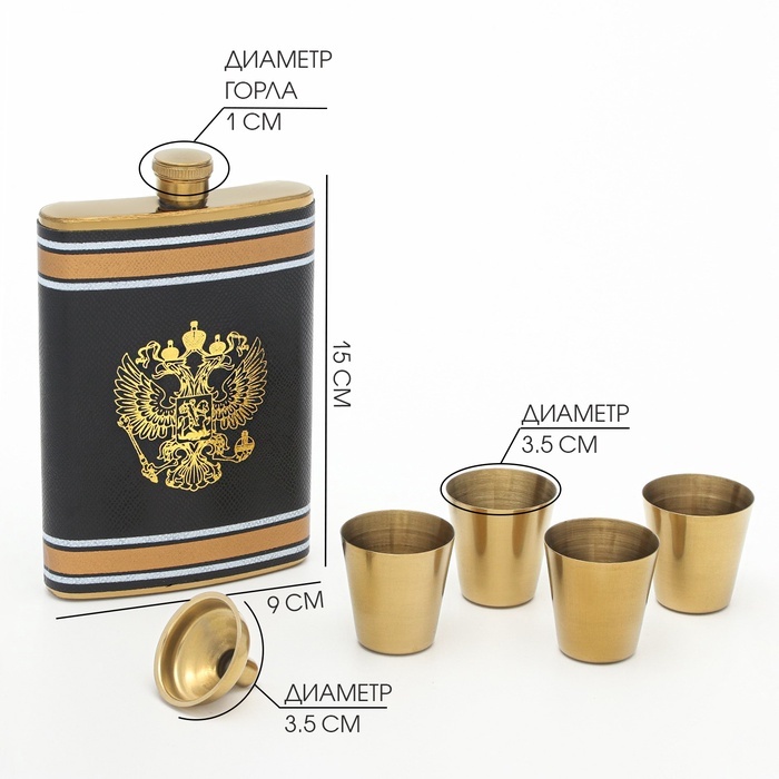 Подарочный набор «Герб России»: фляжка 210 мл, 2 стопки, воронка Вопросы по товару