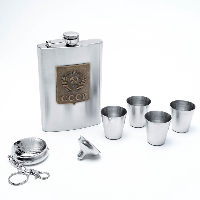 Подарочный набор «СССР»: фляжка 270 мл 4 стопки, воронка, брелокПодарочный набор «СССР»: фляжка 270 мл 4 стопки, воронка, брелокПодарочный набор «СССР»: фляжка 270 мл 4 стопки, воронка, брелок
