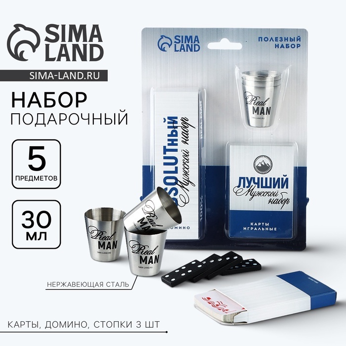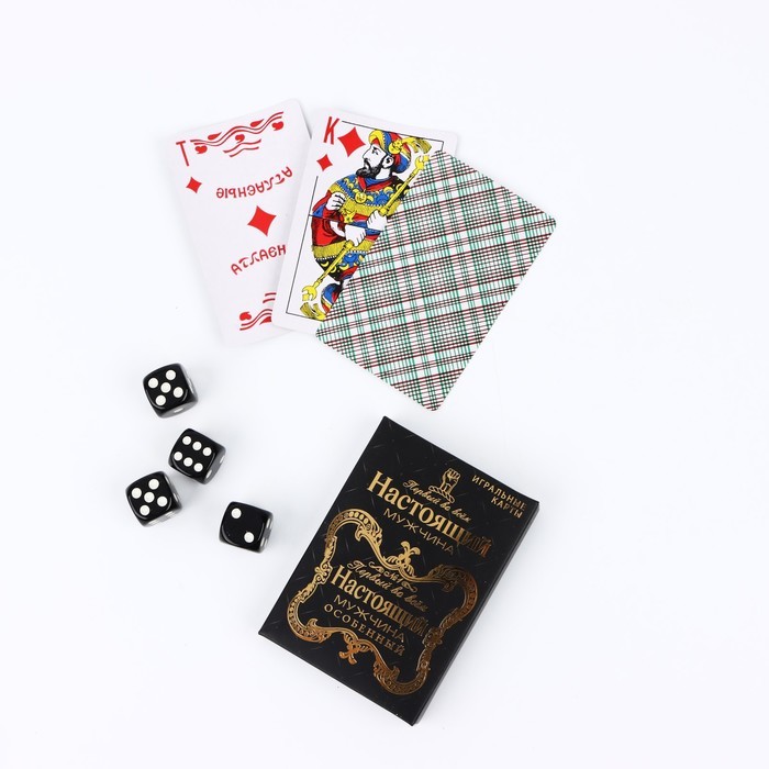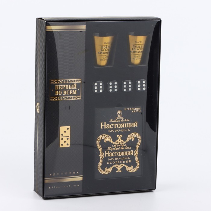 Подарочный набор мужской «Особенный», карты, домино, стопки 2 шт. ? 30 мл, кости игральные 4 шт. Вопросы по товару