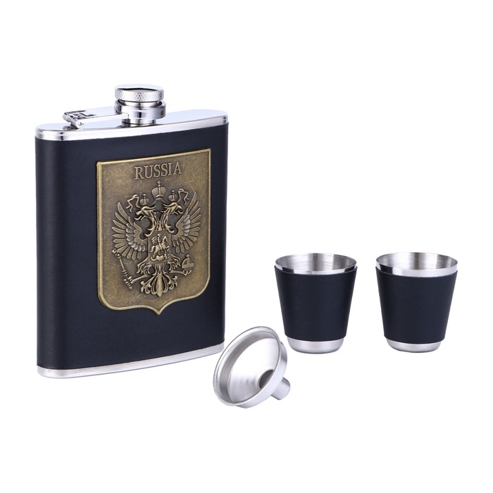 Подарочный набор «Герб России»: фляжка 210 мл, 2 стопки, воронкаПодарочный набор «Герб России»: фляжка 210 мл, 2 стопки, воронкаПодарочный набор «Герб России»: фляжка 210 мл, 2 стопки, воронка