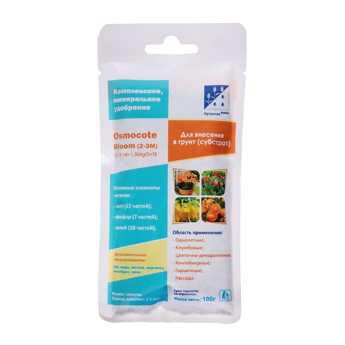Удобрение Osmocote Bloom 12-7-18 + ТЕ, 2-3 мес., 100 гУдобрение Osmocote Bloom 12-7-18 + ТЕ, 2-3 мес., 100 гУдобрение Osmocote Bloom 12-7-18 + ТЕ, 2-3 мес., 100 г