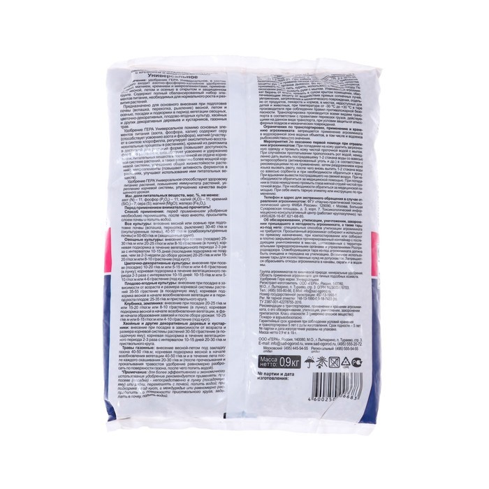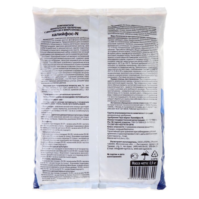 Минеральное удобрение «ГЕРА» Калийфос-N, 0.9 кгМинеральное удобрение «ГЕРА» Калийфос-N, 0.9 кгМинеральное удобрение «ГЕРА» Калийфос-N, 0.9 кг