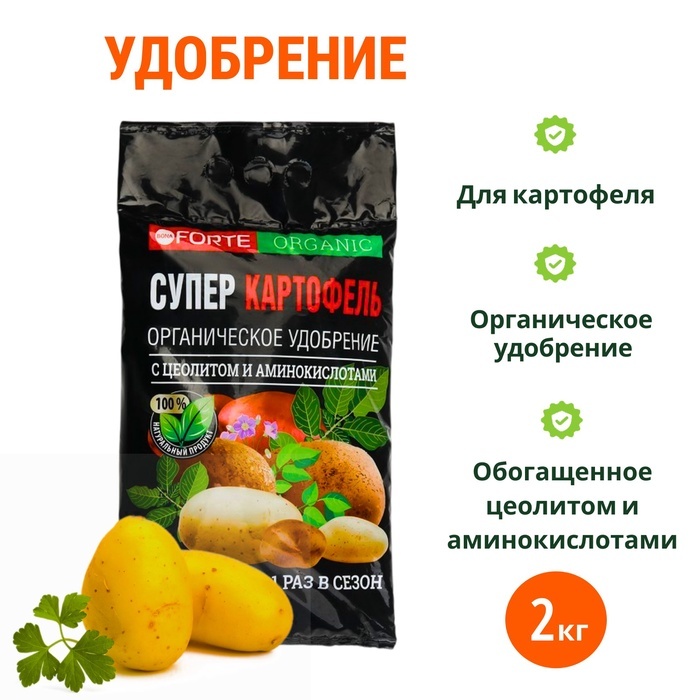 Органическое удобрение "Bona Forte". Область применения для личных подсобных хозяйств Ограничение по транспортировка, применению и хранению: не допускает-  применение агрохимиката не по прямому н... Показать описаниеазначению или в нормах, превышающих рекомендованные. ПРЕИМУЩЕСТВА ОРГАНИЧЕСКОГО УДОБРЕНИЯ СУПЕР КАРТОФЕЛЬ. - Повышает урожайность на 50-60%; - Ускоряет созревание овощей на 10-14 дней; - Улучшает плодородие почвы; - Увеличивает содержание гумуск; - Увеличивает лежкость корнеплодов. Условия хранения. Хранить удобрения ненарушенной герметикуной заводской упакове в сухих закрытых помещениях, отдельно от продуктов, лекарств и кормов в местах недоступных для детей и животных. Температура хранения от -40°C до +50°C Меры безопасности при транспортировкаларни и хранении Соблюдать общие требования безопасности и правила личной гигиены. При заботе следует пользоваться перчатками и респиратором типа ШБ-1. После работы следует вымыть руки с мылом. Первая помощь при отравлении. При попадании удобрения на кожу промыть загрязненное место водой с мылом. При попадании в глаза промыть немедленно большим количеством проточной воды.