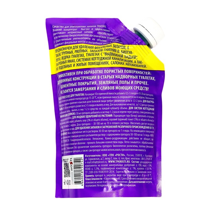 Средство от запаха и объема в выгребных ямах и септиках "Тратан", дой-пак, 0,5 л Вопросы по товару
