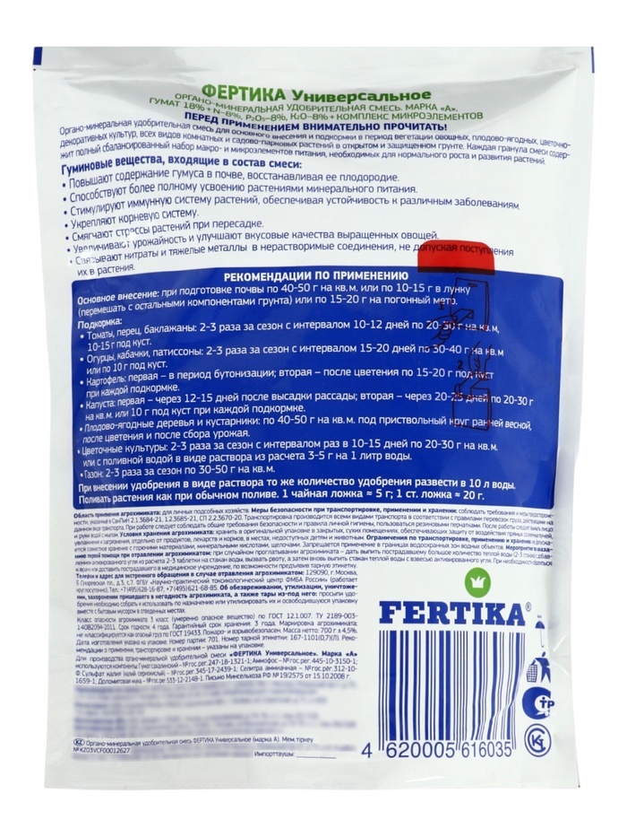 Органо-минеральная удобрительная смесь. Универсальное (NPK 8:8:8 + микроэлементы) Дой-Пак 0,7 кг 109 Вопросы по товару