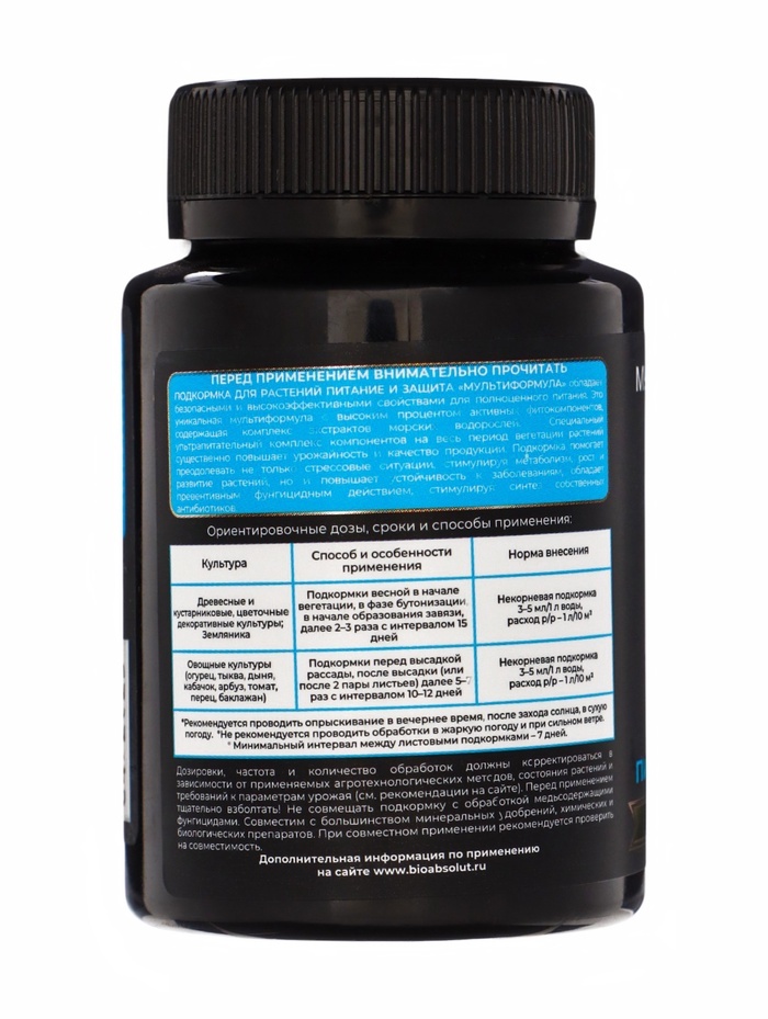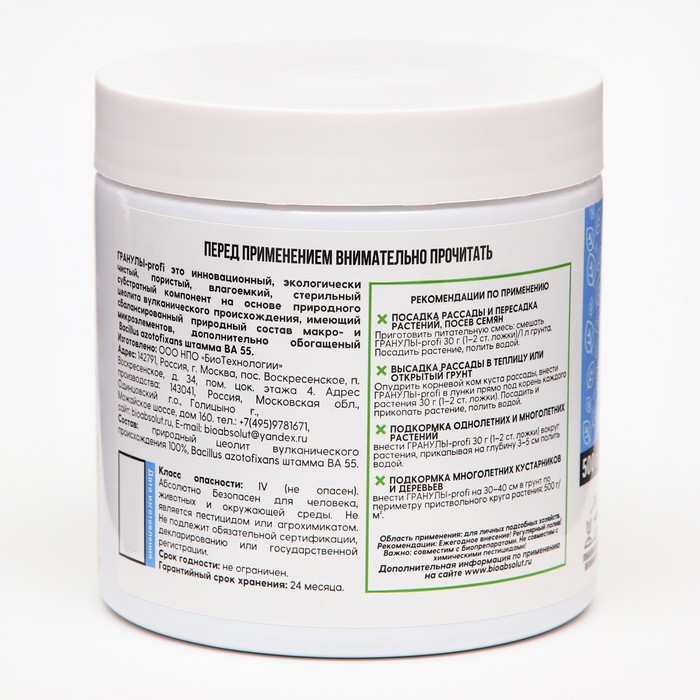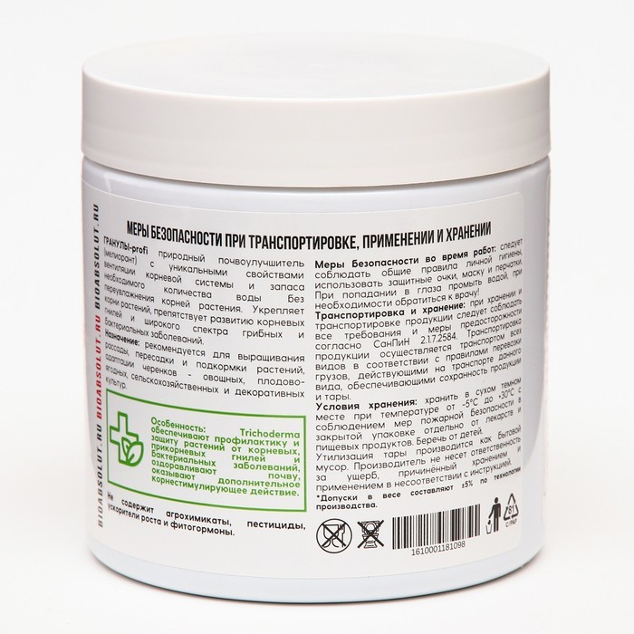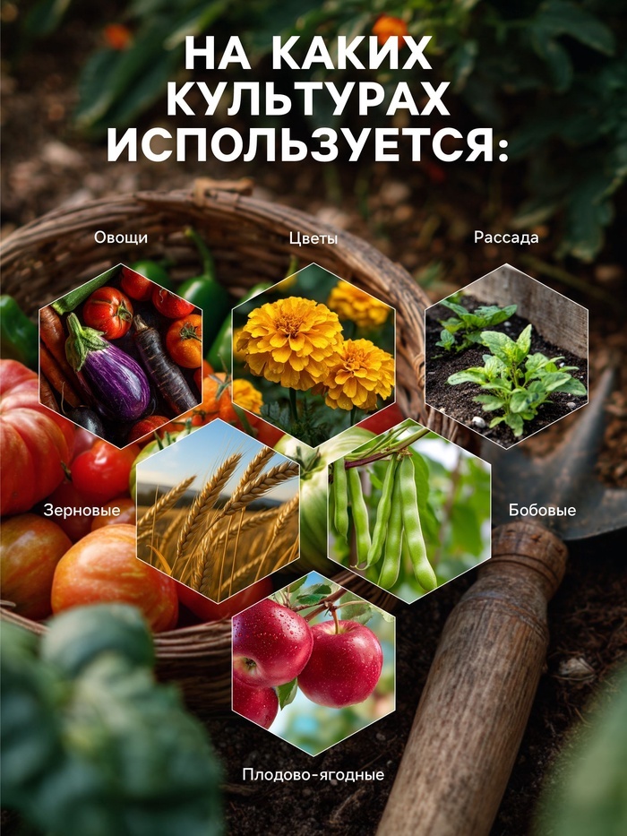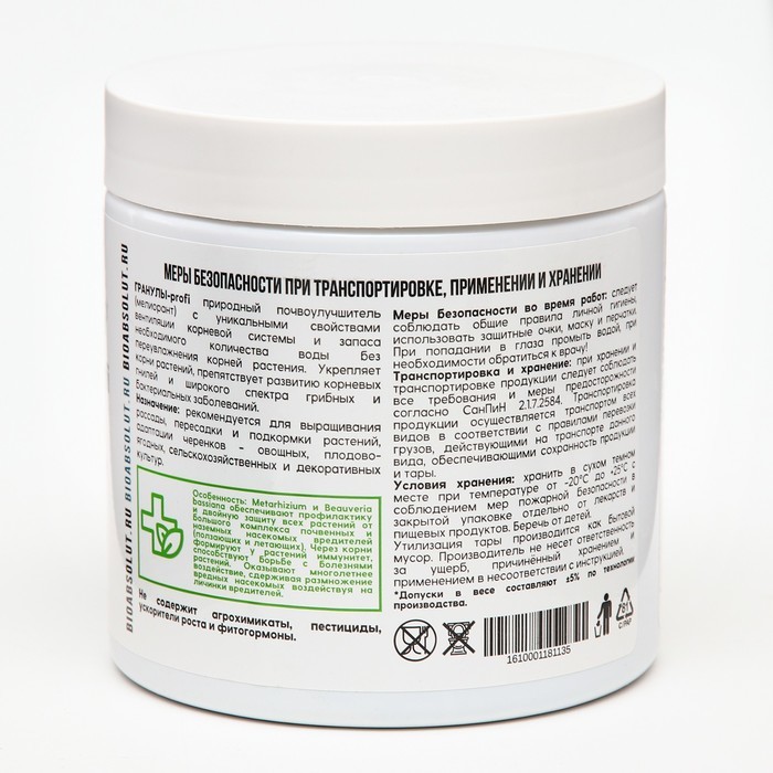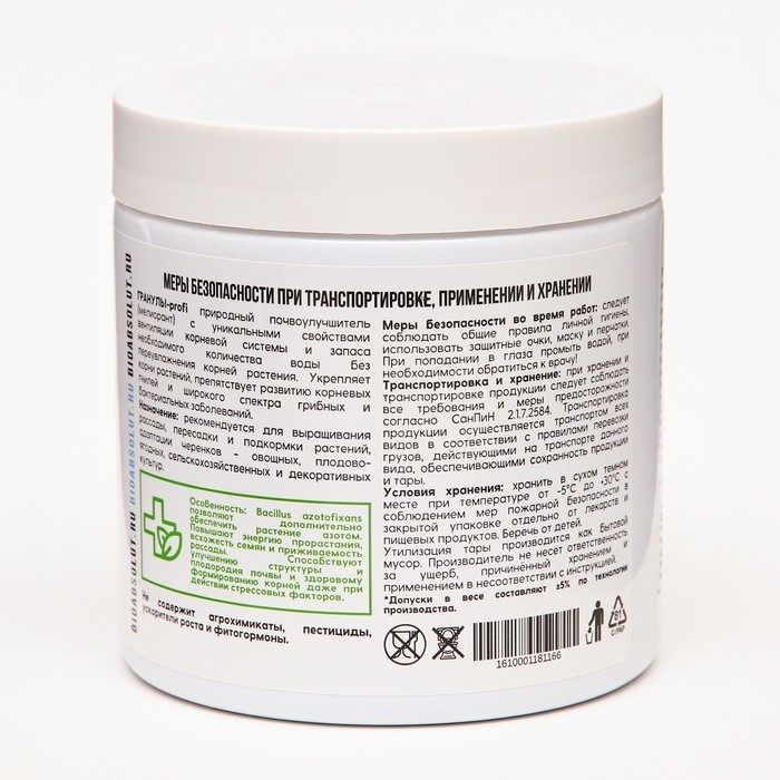 Мощно повышает урожайность, качество продукции и здоровье человека; Создает биоразнообразие плодородной почвы; Фиксирует атмосферный азот, преобразует фосфор, калий и необходимые микроэлементы в досту... Показать описаниепную для растений форму, что позволяет вносить меньше минеральных удобрений или полностью заменить их; Защищает растения от болезнетворных грибов, бактерий, вирусов, личинок насекомых-вредителей, нематод; Для получения богатого, экологически чистого урожая синтезирует нужные растениям аминокислоты, витамины, биостимуляторы. Это целые фабрики полезных веществ; . Стимулирует рост и развитие растений. Растения и микроорганизмы находятся Во взаимовыгодном симбиозе: растения через корневые выделения подкармливают полезную биоту; Мощно повышает иммунитет растений; • Восстанавливает плодородие и содействует улучшению структуры почвы. Внесение препарата перед вспашкой, культивацией, перекапыванием, Применение: разрыхлением улучшает механическую структуру почвы, удерживает и сохраняет влагу за счет природного разрыхлителя, оказывает ростостимулирующее действие на семена, рассаду, овощные и плодовые культуры. Осенью, после сбора урожая, до наступления холодов, внесение препарата способствует разложению растительных и прочих органических остатков, обеззараживанию почвы от болезнетворных грибов, бактерий, личинок насекомых-вредителей.