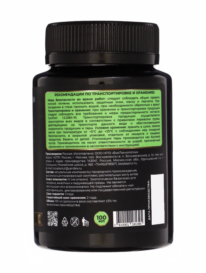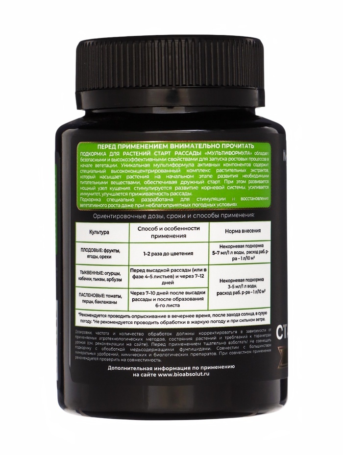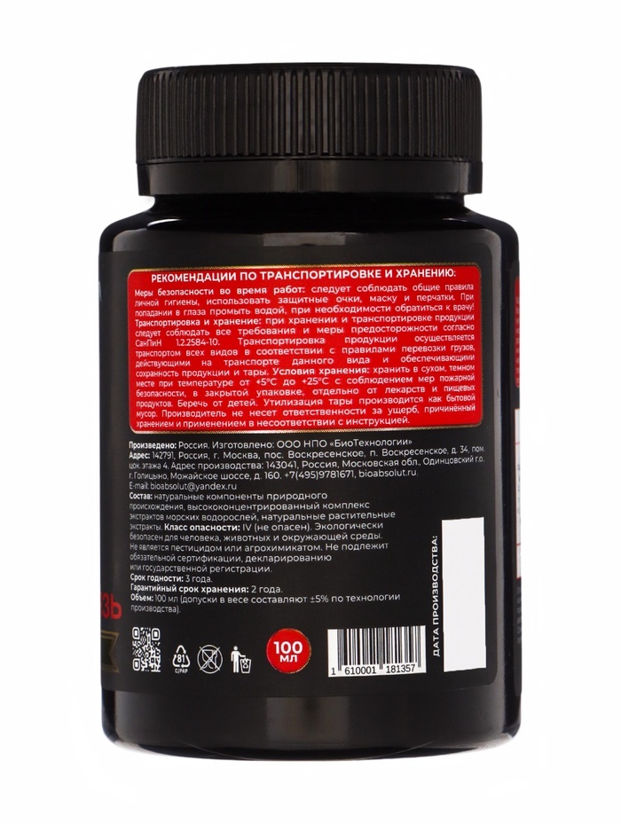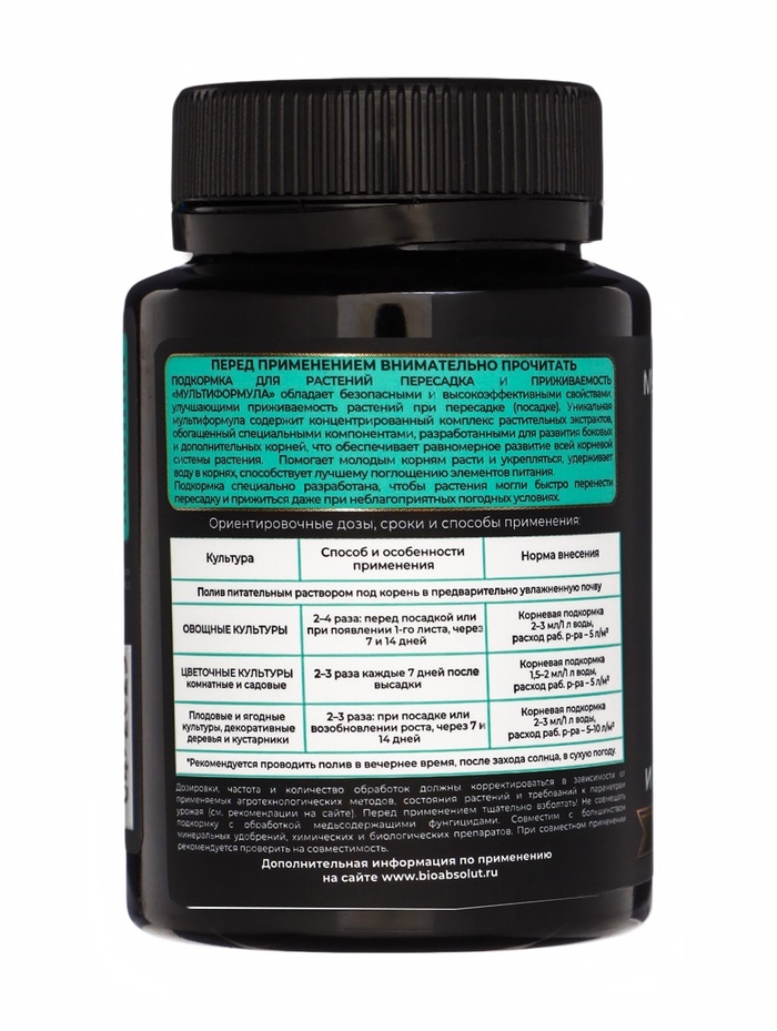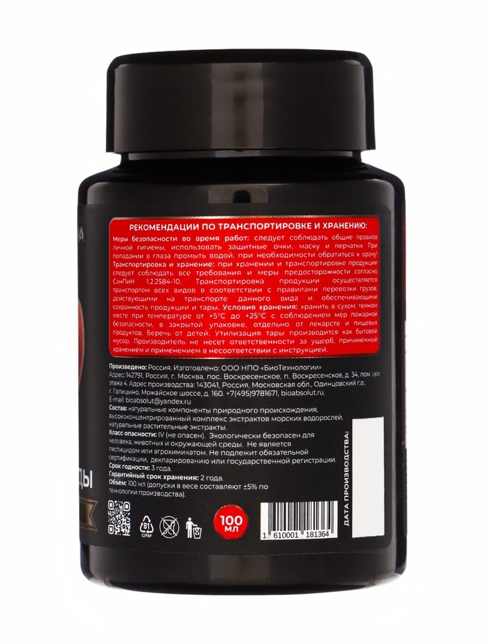 Мощно повышает урожайность, качество продукции и здоровье человека; Создает биоразнообразие плодородной почвы; Фиксирует атмосферный азот, преобразует фосфор, калий и необходимые микроэлементы в досту... Показать описаниепную для растений форму, что позволяет вносить меньше минеральных удобрений или полностью заменить их; Защищает растения от болезнетворных грибов, бактерий, вирусов, личинок насекомых-вредителей, нематод; Для получения богатого, экологически чистого урожая синтезирует нужные растениям аминокислоты, витамины, биостимуляторы. Это целые фабрики полезных веществ; . Стимулирует рост и развитие растений. Растения и микроорганизмы находятся Во взаимовыгодном симбиозе: растения через корневые выделения подкармливают полезную биоту; Мощно повышает иммунитет растений; • Восстанавливает плодородие и содействует улучшению структуры почвы. Внесение препарата перед вспашкой, культивацией, перекапыванием, Применение: разрыхлением улучшает механическую структуру почвы, удерживает и сохраняет влагу за счет природного разрыхлителя, оказывает ростостимулирующее действие на семена, рассаду, овощные и плодовые культуры. Осенью, после сбора урожая, до наступления холодов, внесение препарата способствует разложению растительных и прочих органических остатков, обеззараживанию почвы от болезнетворных грибов, бактерий, личинок насекомых-вредителей.