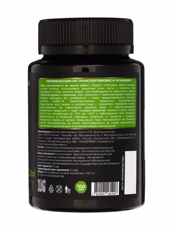 Средство для предохранения растений от вредителей из отряда полужесткокрылых сочетает в себе инновационный комплекс экстракта далматской ромашки и природных авермектинов групп B1 и B2. Этот уникальный... Показать описание состав обеспечивает синергетическое воздействие, направленное не только на эффективное уничтожение тли, но и защиту растений от её разрушительного воздействия. Природный состав обеспечивает безопасность людей и животных, а также урожая, не воздействует на почву и не накапливается в плодах. Рекомендуется проводить опрыскивание в период минимальной солнечной активности, при безветренной погоде и низкой вероятности осадков в течение суток, в утренние или вечерние часы, после прекращения лёта пчёл (срок изоляции пчёл – 24 часа).  Срок ожидания до сбора урожая после обработки препаратом – 48 часов.