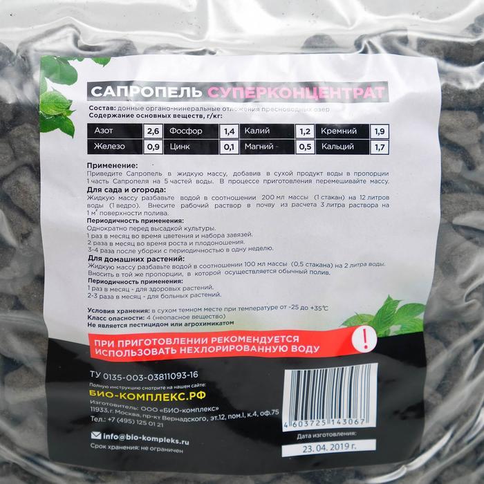 Сапропель органоминеральное удобрение Объем: 2 л Сапропель — это органоминеральное удобрение, получаемое из донных отложений водоемов. Оно содержит множество питательных веществ, необходимых для роста... Показать описание и развития растений. Сапропель улучшает структуру почвы, повышает её плодородие и способствует лучшему удержанию влаги. Преимущества: * Высокая биологическая активность * Содержит макро- и микроэлементы * Улучшает структуру почвы и ее воздухопроницаемость * Способствует развитию полезной микрофлоры Способ применения: 1. Разведите 2 л удобрения в 10 л воды. 2. Поливайте растения под корень или используйте для опрыскивания. 3. Рекомендуется применять в период активного роста растений, 1-2 раза в месяц. Сапропель поможет вашим растениям получать необходимые питательные вещества и обеспечит здоровый рост и развитие!