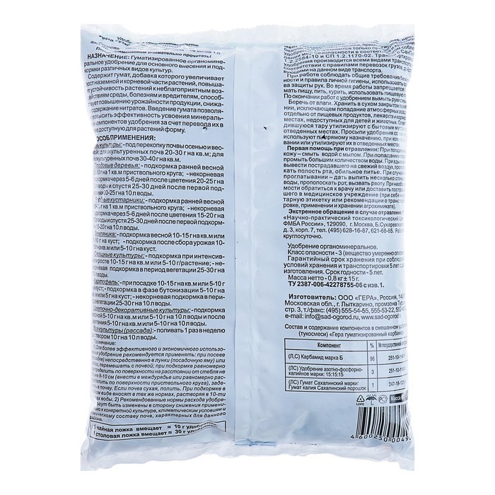 Гуматизированный карбамид «ГЕРА», 0.8 кгГуматизированный карбамид «ГЕРА», 0.8 кгГуматизированный карбамид «ГЕРА», 0.8 кг