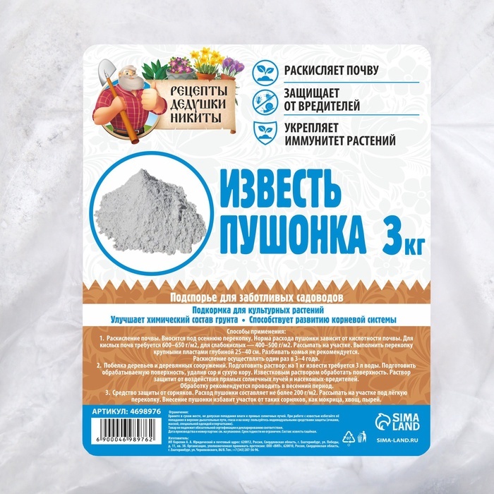 Известь пушонка «Рецепты Дедушки Никиты» 3 кгИзвесть пушонка «Рецепты Дедушки Никиты» 3 кгИзвесть пушонка «Рецепты Дедушки Никиты» 3 кг