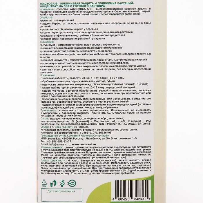 Средство для защиты и подкормки растений «AGROYOGA-Si», 1 л Вопросы по товару
