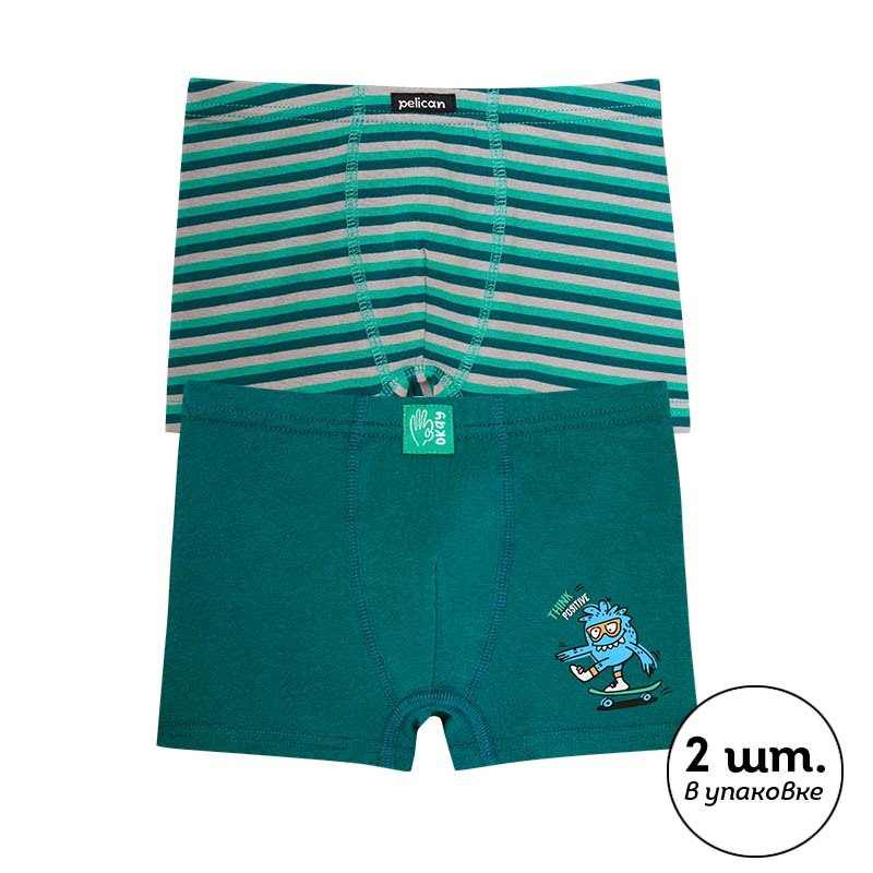 Состав: низ: 100%хлопок, низ2: 100%хлопокОписание: Трусы для мальчика Pelican. Модель боксеры. Имитация гульфика на одной пуговице. Декоративная отстрочка по низу. В наборе 2 штуки с принтами. Приятна... Показать описаниея на ощупь дышащая ткань для нежной кожи ребёнка. В составе ткани качественный 100% хлопок и эластан, поэтому изделие долго сохраняет форму даже после множества стирок, износостойкое, практичное для регулярного применения. Модель выполнена в соответствии с анатомическими особенностями строения тела, что обеспечивает идеальную посадку. Иногда такой тип называют семейные. Красивое детское нижнее белье для ребенка представлено в синем и оранжевом цветах в широкой сетке маленьких, средних и больших размеров 86, 92, 98, 104, 110. То есть, подойдет новорожденным малышам и тинейджерам постарше на 1, 2, 3, 4, 5, 6 лет. Универсальный тип ростовки товара подойдет высоким, среднего роста и низким. Классно сочетается с брюками, джинсами, трико, шортами и другими элементами образа парня подростка. Вы можете подобрать комплект в каталоге официального селлера. Подходит для кругологодичного применения (как базовое или нательное): летом, осенью, зимой, весной. Можно ходить в школу, на праздники (например, Новый год, 1 сентября, день учителя, выпускной) и особенные события (День рождения), использовать в повседневной жизни (и в качестве поддевы), дома (как часть домашнего белья и для сна), заниматься спортом (для бега, гимнастики, самоката, велосипеда, футбола) и физкультурой в учебном заведении. Сын и внук будет в восторге от молодежной вещи! Pelican - российский популярный бренд с 20-летней историей, который сделал красивую одежду комфортной, а уход за ней - простым, чтобы у вас осталось больше времени на получение удовольствия от жизни. Ценности бренда - это забота о покупателе и понимание его потребностей. Ежегодно дизайнеры Пеликан создают от 18 коллекций для детей и женщин, изучая модные тренды и вкладывая в каждую историю уникальные настроения.