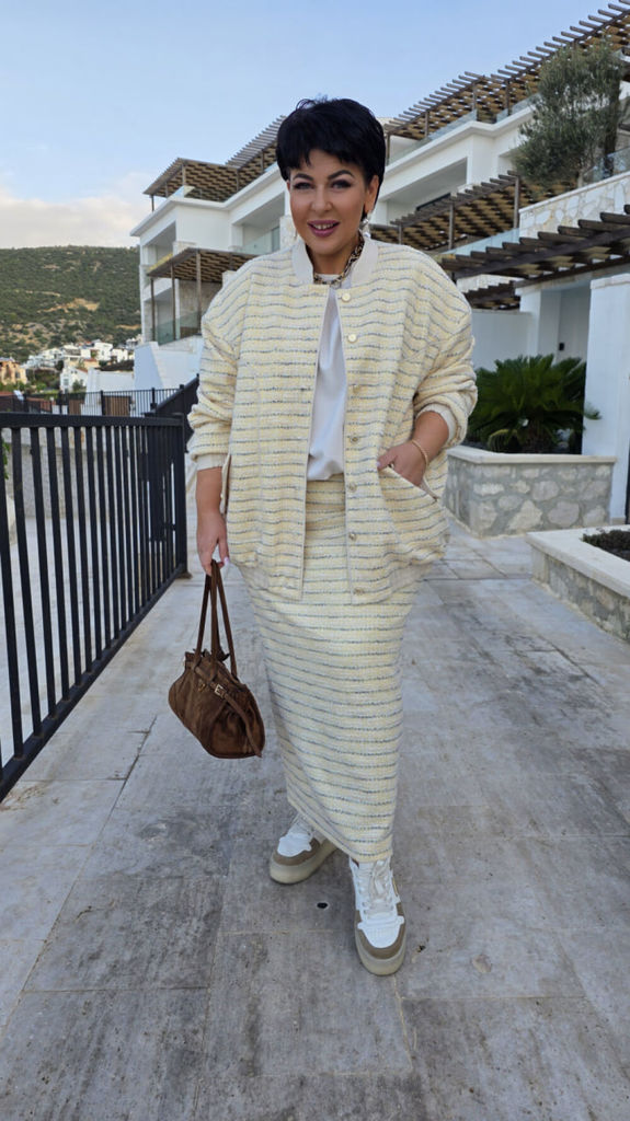 Состав: Вискоза-65%; ПЭ-32%; Спандекс-3%; Сезон: Осень-Зима Рост: 164 Страна бренда: Беларусь Состав: Вискоза-65%; ПЭ-32%; Спандекс-3%; Эта блуза от Анелли - настоящее искусство, воплощенное в нежной,... Показать описание струящейся ткани, которая ласкает кожу шелковистым сиянием Настоящая магия начинается прямо над линией талии, где рождается виртуозная драпировка. Ткань, послушная и пластичная, изящно перекручивается, формируя мягкий, объемный узел из живописных складок. Этот элемент не просто украшение - это скульптурный акцент, который притягивает взгляды, подчеркивает талию и придает всему силуэту уникальный, динамичный характер. Детали довершают образ безупречного качества: строгий отложной воротник на стойке, длинные рукава, заканчивающиеся элегантными манжетами на пуговицу, и аккуратная застежка на петли и пуговицы на притачной планке. Блуза в цвете «айс латте» создана для того, чтобы даже самый обычный день наполнился ощущением особенного стиля и утонченной женственности. Замеры: Размер 48: ОГ-106; ОТ-102; ОБ-114; ОП-40; ДИ-63; ДР-61; Размер 50: ОГ-110; ОТ-106; ОБ-118; ОП-41; ДИ-63; ДР-62; Размер 52: ОГ-114; ОТ-110; ОБ-122; ОП-42; ДИ-64; ДР-62; Размер 54: ОГ-120; ОТ-116; ОБ-128; ОП-44; ДИ-64; ДР-62; Размер 56: ОГ-124; ОТ-120; ОБ-132; ОП-45; ДИ-65; ДР-62; Размер 58: ОГ-128; ОТ-124; ОБ-136; ОП-45; ДИ-66; ДР-62;
