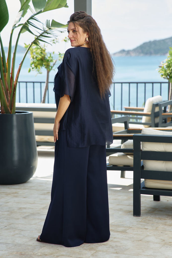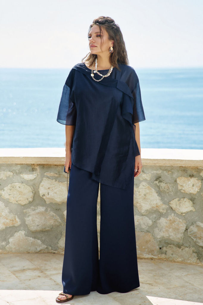 Состав: ПЭ-100%; Сезон: Весна Рост: 164 Страна бренда: Беларусь Состав: ПЭ-100%; Модель отшивается под заказ. Срок пошива от 3 недель. Широкие брюки глубокого синего оттенка, свободно свисают, создава... Показать описаниея плавные линии и элегантную силуэтность. Ткань, из которой они выполнены, обладает текстурой, придавая образу нотку роскоши и комфорта. Брюки идеально подчеркивают фигуру, создавая стильный и уверенный вид. Брюки свободного силуэта, расширяются к низу. Пояс притачной на резинке, что обеспечивает максимально удобную посадку на любой тип фигуры, в боковых швах карманы. Длина брюк 108 см. Брюки    50 52 54 56 58 60 обхват талии    76/110 80/114 84/118 88/122 92/126 96/130 обхват бедер    120 124 128 132 136 140