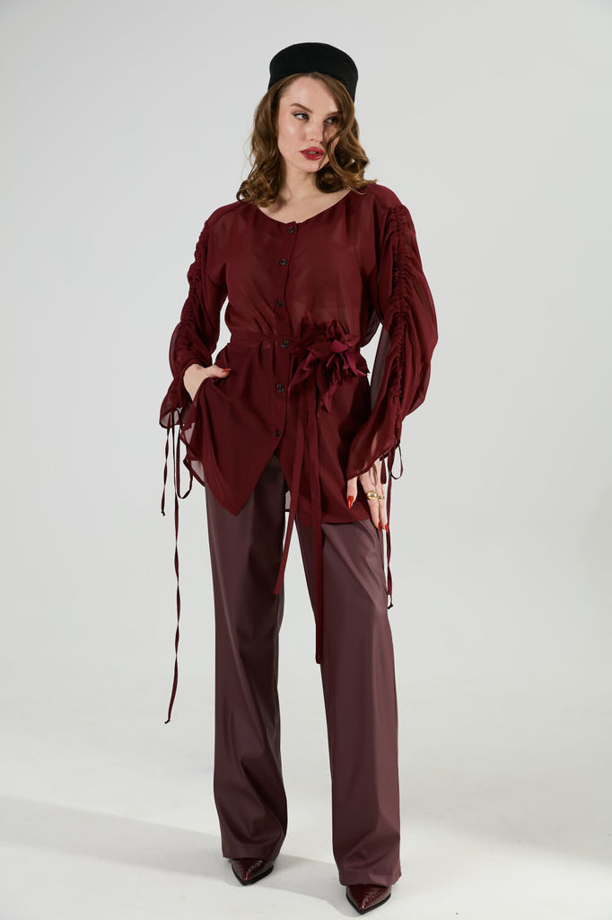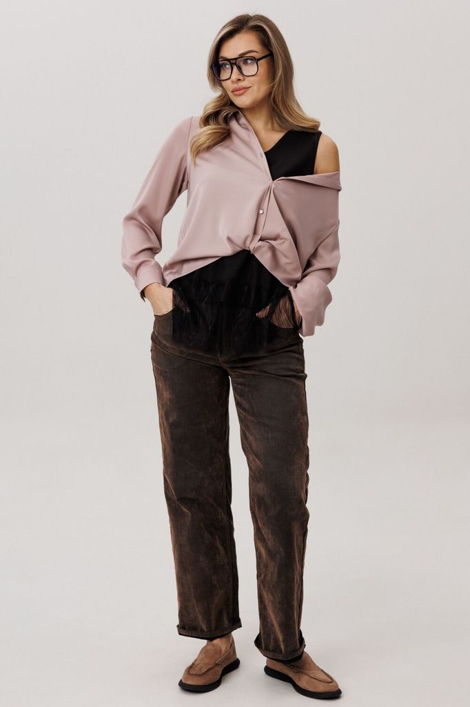 Состав: Вискоза-65%; ПЭ-32%; Спандекс-3%; Сезон: Осень-Зима Рост: 170 Страна бренда: Беларусь Состав: Вискоза-65%; ПЭ-32%; Спандекс-3%; Изящная блуза от Анелли, сотканная из современной роскоши. Её су... Показать описаниеть - в благородной ткани: струящейся, нежной, с глубоким и сдержанным блеском, которая облегает фигуру мягким, но уверенным потоком. Тон задают безупречные детали: строгий отложной воротник на стойке, чёткая линия застёжки на пуговицах и идеальные втачные рукава, собранные у запястья в изящные манжеты. Их совершенство оттеняет смелая игра кроя - асимметричный низ, и та самая изысканная деталь в виде мягкого узла, которая придаёт силуэту запоминающийся художественный штрих. Эта рубашка создана стать главной героиней вашего гардероба. Она с лёгкостью сочетается с классическими брюками, создавая образ для важных встреч, или с простыми джинсами, мгновенно поднимая их до уровня утончённого стиля. Идеальное комбо с топом с кружевом 1664, этот дуэт открывает пространство для тонких экспериментов. Это выбор для тех, кто ценит безупречный крой, дорогую ткань и силу тихой, но абсолютной уверенности в каждой детали. На модели в блузе цвета «розоватая нежность» кружевной топ 1664. Замеры: Размер 48: ОГ-110; ОБ-116; ОП-40; ДИ спинки - 64; ДР-62; ДИ переда - 59; Размер 50: ОГ-114; ОБ-120; ОП-40; ДИ спинки - 64; ДР-62; ДИ переда - 60; Размер 52: ОГ-118; ОБ-124; ОП-42; ДИ спинки - 65; ДР-62; ДИ переда - 62; Размер 54: ОГ-122; ОБ-128; ОП-44; ДИ спинки - 65; ДР-61; ДИ переда - 62; Размер 56: ОГ-126; ОБ-132; ОП-46; ДИ спинки - 66; ДР-62; ДИ переда - 63; Размер 58: ОГ-130; ОБ-138; ОП-46; ДИ спинки - 67; ДР-62; ДИ переда - 64; Размер 60: ОГ-134; ОБ-144; ОП-48; ДИ спинки - 67; ДР-62; ДИ переда - 64; Размер 62: ОГ-138; ОБ-148; ОП-50; ДИ спинки - 68; ДР-62; ДИ переда - 65;