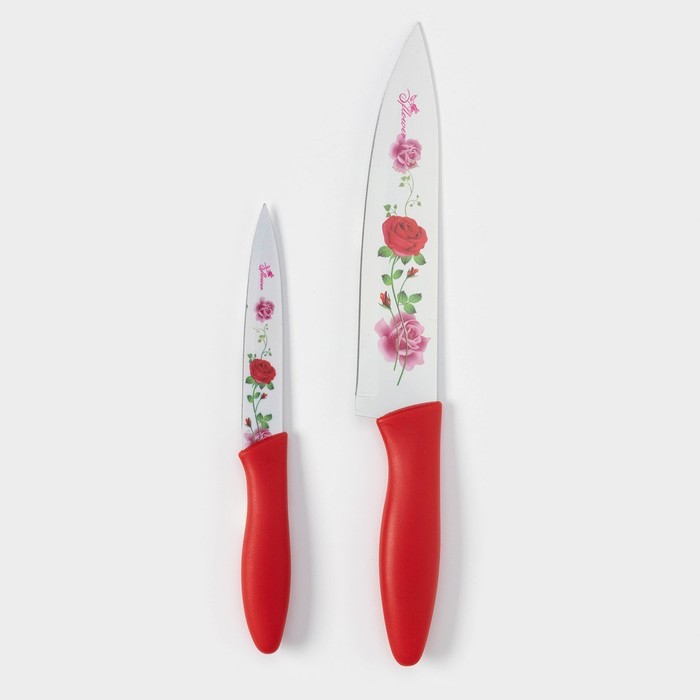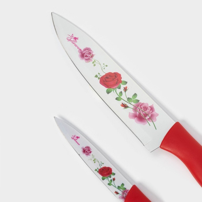 Набор кухонных принадлежностей Доляна «Нарцисс», 3 предмета: 2 ножа с антиналипающим покрытием, лезвие 12 см, овощечистка, 20?4 см, красныйВопросы по товару