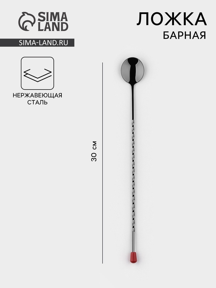 Барная ложка – незаменимый инвентарь для приготовления миксов и коктейлей. Для профессионала в такой ложке важно всё – материал, из которого она изготовлена, форма ручки и особенность насадки на её ко... Показать описаниенце. Преимущества барной ложки: * Изготовлена из нержавеющей стали, которая отличается прочностью, долговечностью и простотой в уходе. Этот материал лучше всего подходит для ежедневного употребления и стоит недорого. * Имеет витую ручку, поэтому можно без проблем делать красивые слои. Для этого ложка переворачивается и упирается в край бокала. Жидкость льётся на ручку буквально по каплям и медленно стекает в ёмкость, не смешиваясь с нижними слоями коктейля. * Имеет мадлер, им можно размять один из ингредиентов коктейля, например, мяту, ягоды или лимон. * Можно мыть в посудомоечной машине.