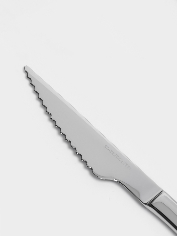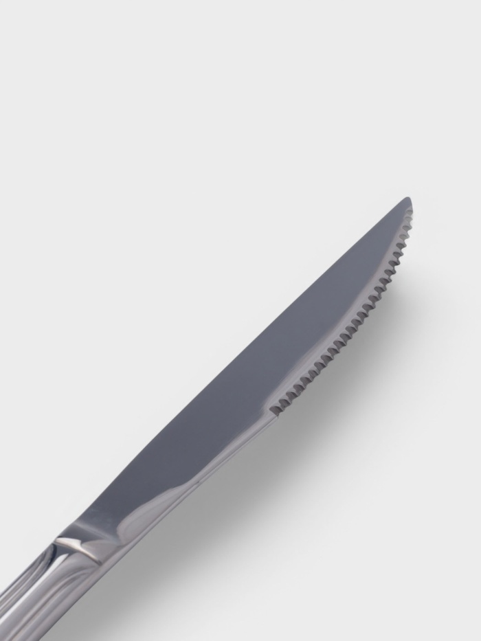 Этот нож для стейка длиной 23,8 см и толщиной 3 мм станет отличным дополнением вашего кухонного инвентаря, сочетая в себе высокое качество, стильный дизайн и удобство использования и обеспечивая комфо... Показать описаниерт и эстетическое удовольствие. Благодаря своей универсальности, этот нож подходит для нарезки различных видов мяса, от стейков до курицы. Этот нож — отличное сочетание стиля, качества и функциональности, которое сделает приготовление пищи простым и приятным. Преимущества: * Долговечность и прочность: нержавеющая сталь гарантирует длительный срок службы и устойчивость к коррозии. * Универсальность: подходит для нарезки различных видов мяса, от стейков до курицы. * Элегантный дизайн: серебристый цвет и классическая форма дополнят любой кухонный инвентарь. * Лёгкость в уходе: нож можно мыть в посудомоечной машине, что экономит ваше время. * Эргономичная ручка: удобный захват для комфортного использования. Дополнительно Рекомендации по уходу: Можно мыть в посудомоечной машине