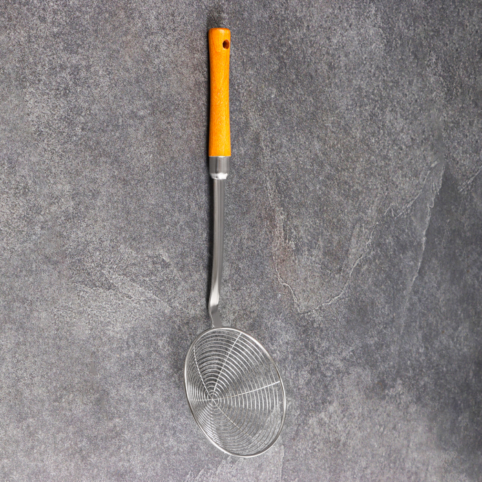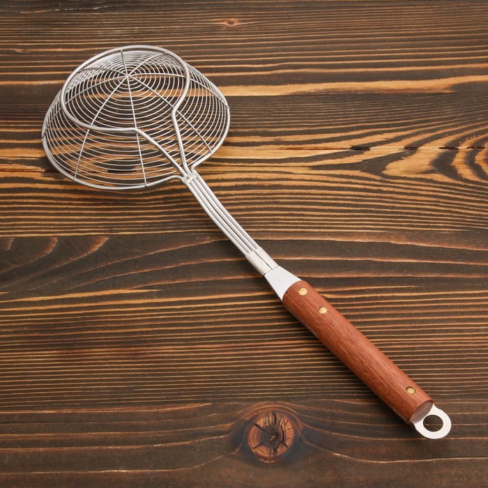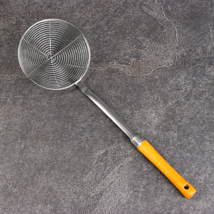 Этот дуршлаг-сито с деревянной ручкой — практичный кухонный инструмент для ежедневного использования. Преимущества * Удлинённая деревянная ручка 41 см — удобство при работе с глубокой посудой и на пли... Показать описаниете. * Компактная глубина черпала 3,5 см и диаметр 13 см подходит для небольших порций. * Прочная конструкция из металла, устойчивая к деформации. * Два нейтральных цвета — бежевый и серебристый — легко впишутся в любую кухню. Простота, проверенная временем В этом инструменте нет ничего лишнего — только продуманная форма и надёжные материалы. Это тот предмет, который годами выполняет свою работу, не привлекая к себе внимания, но всегда оказываясь под рукой в нужный момент.