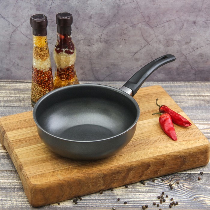 Сковорода из углеродистой стали подойдёт для ежедневного приготовления пищи. Особенности: * антипригарное покрытие существенно снижает расход масла; * корпус отличается высокой стойкостью к деформации... Показать описание; * эргономичная бакелитовая ручка обеспечивает удобный хват; * высокий борт облегчает приготовление блюд. При аккуратном использовании сковорода прослужит долгое время. Подходит для газовых, электрических и стеклокерамических плит. Дополнительно Для увеличения срока службы посуды из углеродистой стали с антипригарным покрытием следует придерживаться некоторых правил ухода и эксплуатации. Изделия допускается мыть вручную без абразивных моющих средств или в посудомоечной машине без агрессивных щелочных веществ. При приготовлении блюд рекомендуем использовать силиконовые, пластиковые или деревянные лопатки. Также советуем не перегревать изделия на сильном огне, не подвергать резким перепадам температуры, чтобы не портить антипригарное покрытие. Выдерживает температуру до ± 300 градусов. Подходит только для домашнего использования.
