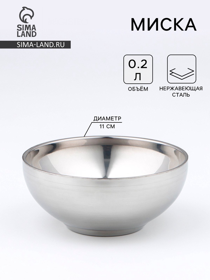 Бытовая посуда из нержавеющей стали славится неприхотливостью в уходе и безукоризненной функциональностью. Коррозиестойкий сплав обеспечивает гигиеничность изделий. Миски из этого материала абсолютно ... Показать описаниебезопасны для здоровья человека. Чем привлекательна посуда из нержавейки? * благодаря низкой теплопроводности модели её содержимое дольше остается горячим; * стильный дизайн радует глаз и поднимает настроение; * высокие бортики удобны в эксплуатации. Как продлить срок службы? Ухаживать за новым приобретением элементарно просто, но стоит помнить о том, что не следует применять для чистки товара абразивные инструменты и сильнохлорированные моющие средства. Если на внутренней поверхности изделия появились пятна, используйте для их удаления несколько капель уксусной или лимонной кислоты. Мискапорадует вас высоким качеством, а мы удивим низкой ценой. Дополнительно Посуда рекомендована для домашнего использования. Может не соответствовать специфическим требованиям, предъявляемым при использовании в предприятиях социальной сферы.