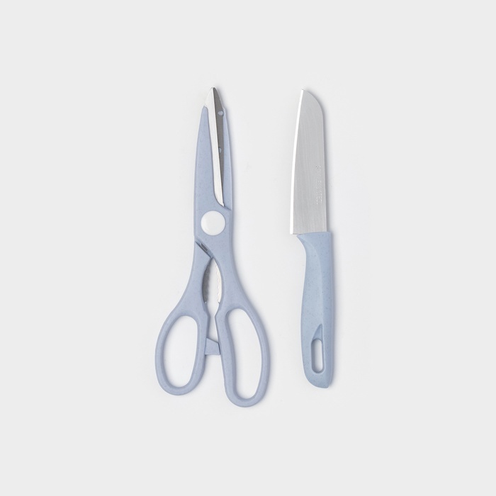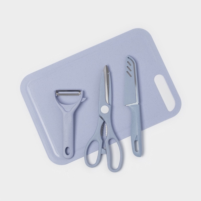 Набор кухонных принадлежностей «Для кухни», 4 предмета: доска, нож, ножницы, овощечистка, голубойВопросы по товару