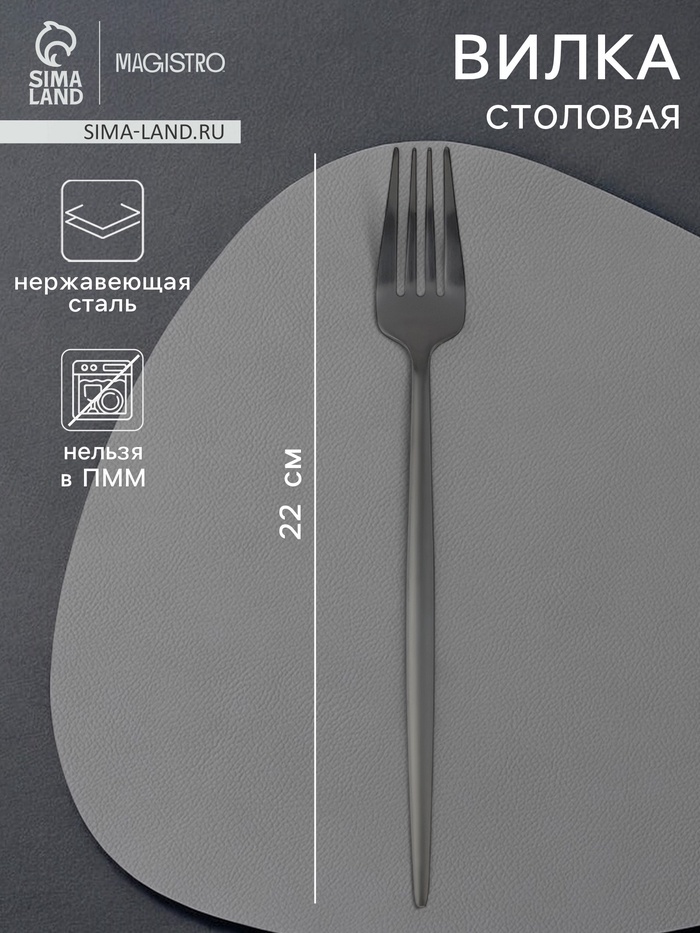 Вилка столовая Magistro «Фолк», h=22 см, нержавеющая сталь, чёрнаяВопросы по товару